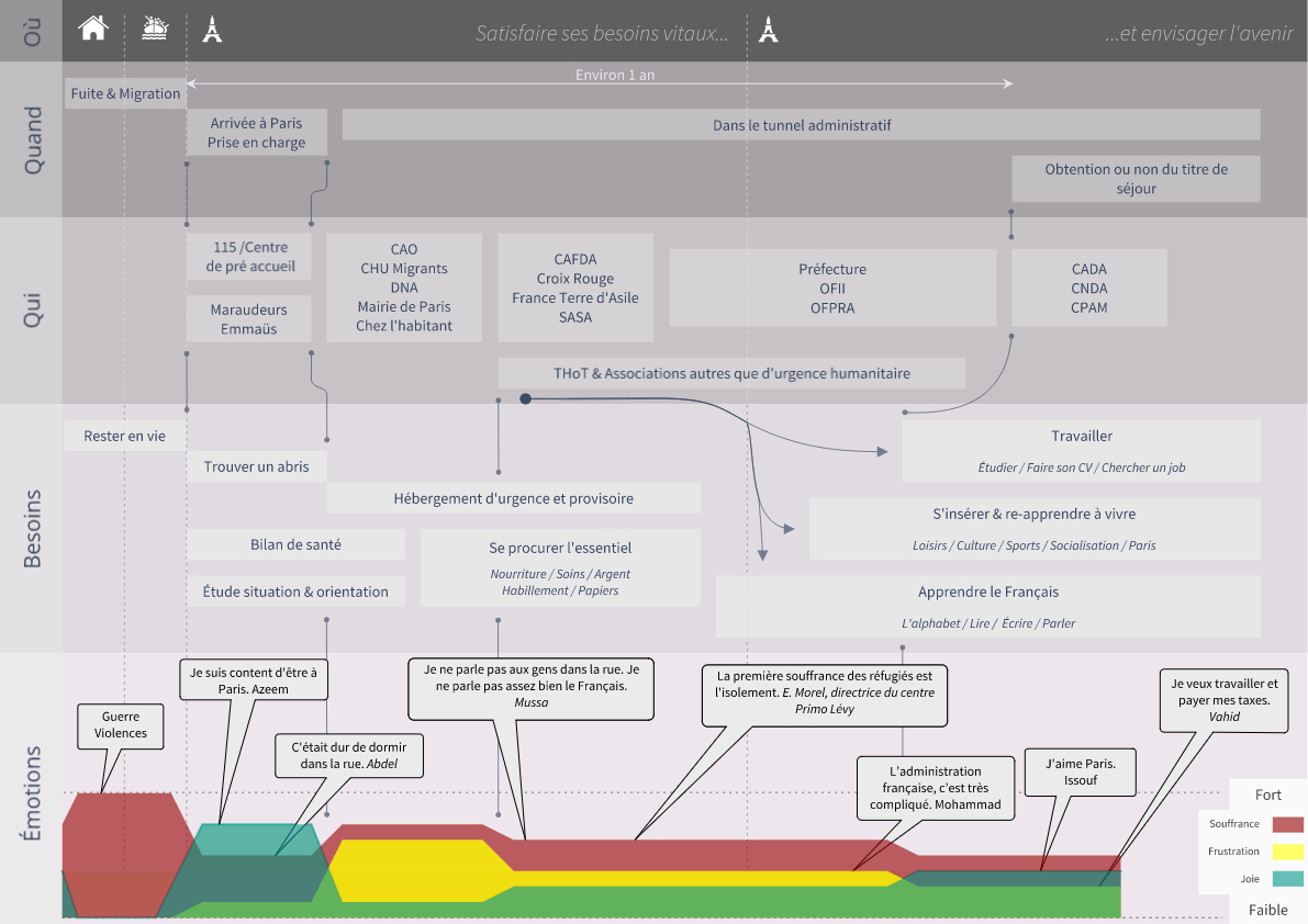 Après une phase de recherche secondaire sur la question des exilés en France, nous avons arpenté le terrain pendant 2 jours.