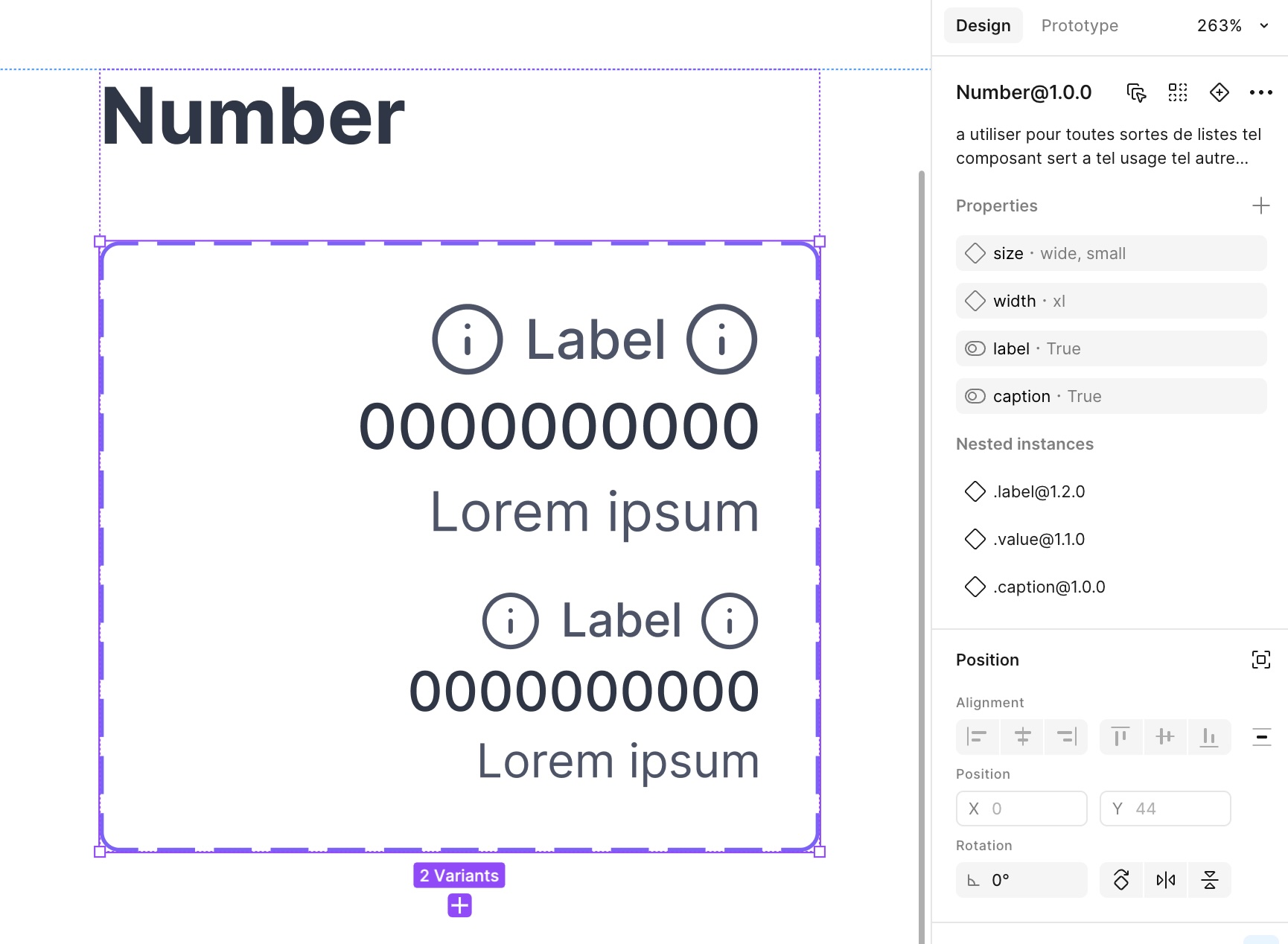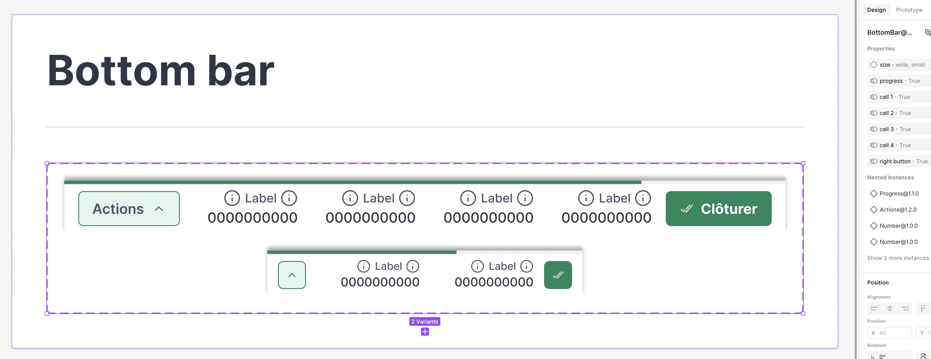 Usage intense des possibilités de Figma : Auto-layout, Variant, Variables depuis 2023 (date de leur introduction) +versioning via l'usage du plugin Semantic-Versioning.