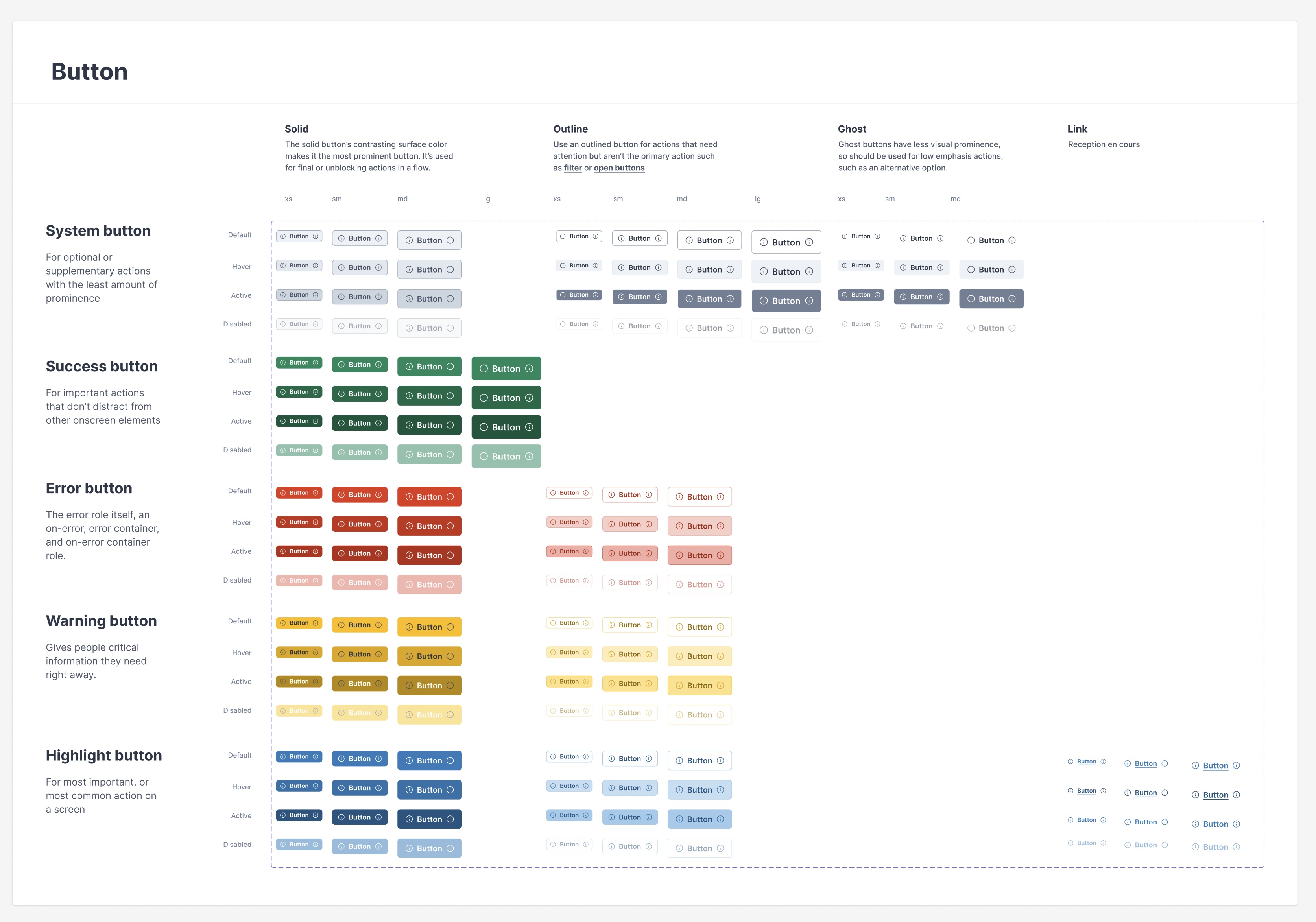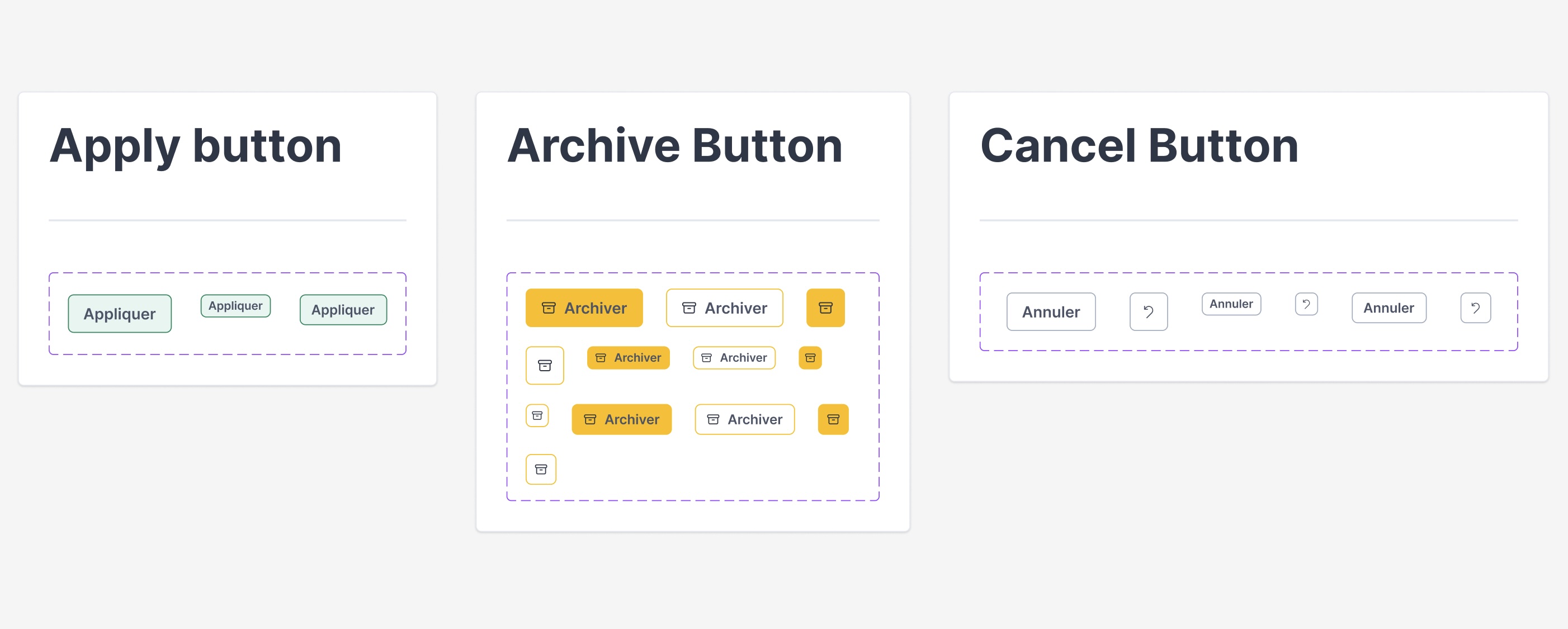 Nos principes UI nous ont beaucoup aidé à tamiser les variations du composant bouton.
