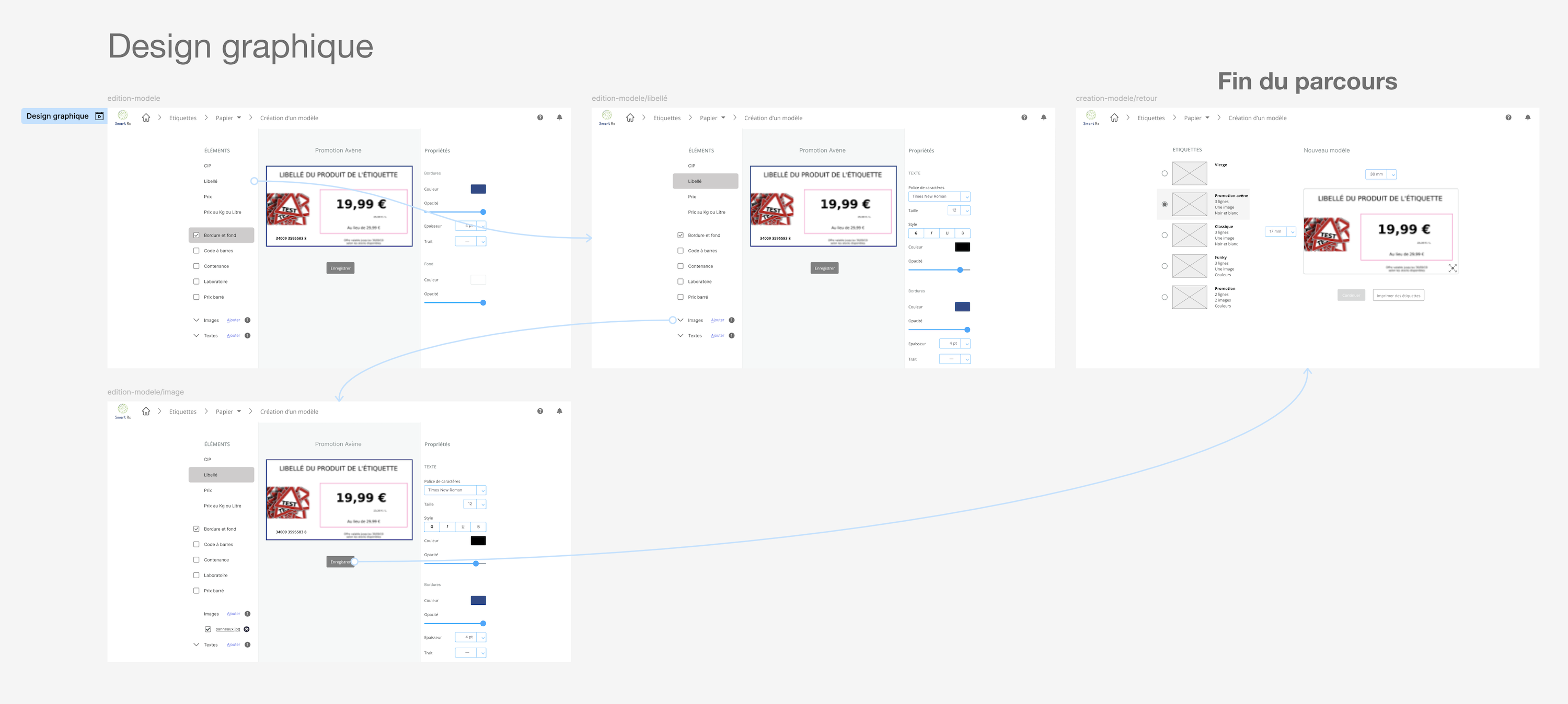Nous avons défini un nouveau parcours, plus logique, où l'utilisateur choisit d'abord les produits pour lesquels il souhaite imprimer les étiquettes, puis le modèle à utiliser.