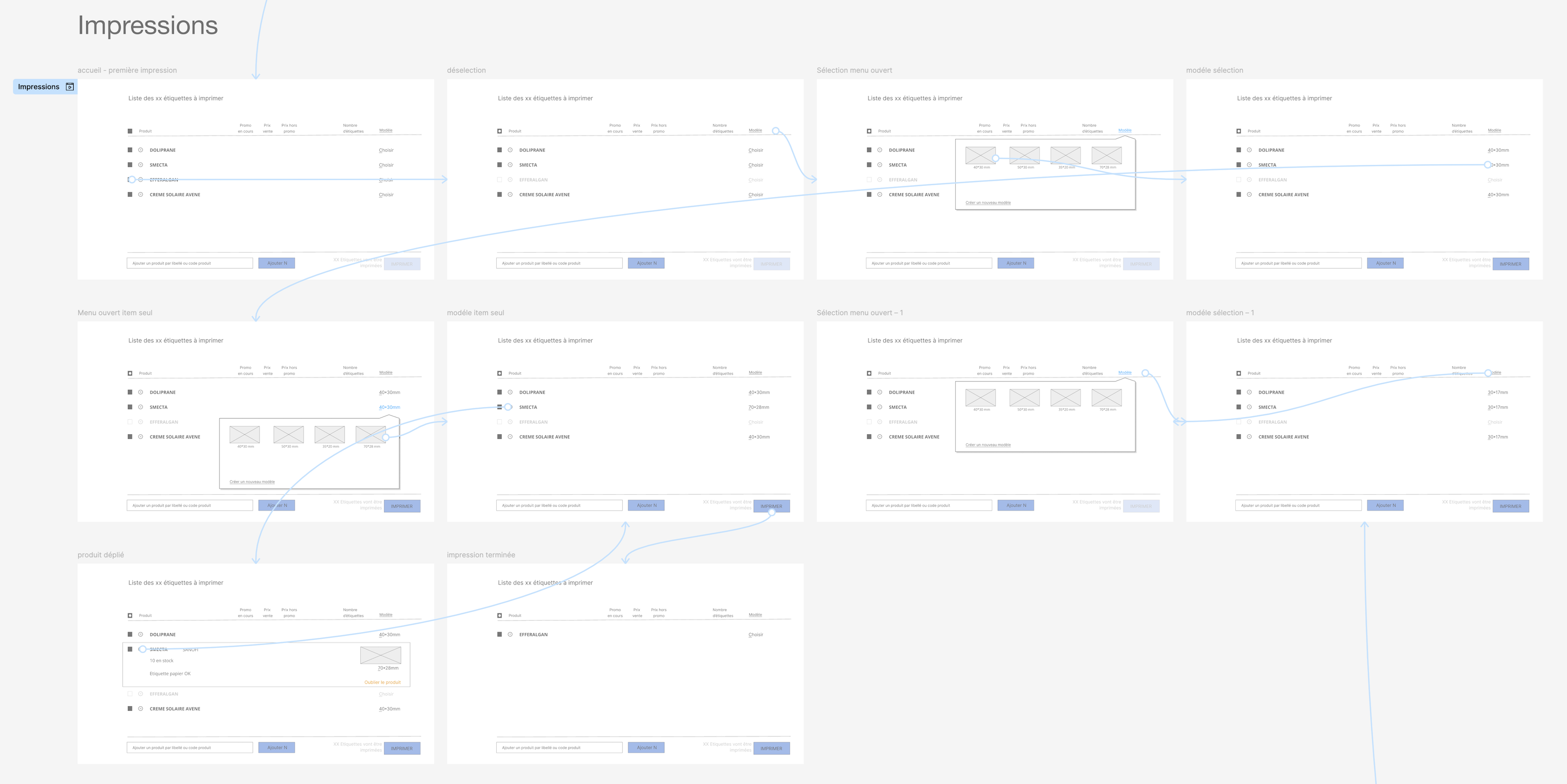 Ce nouveau parcours nous permettait de chaîner les étapes de l'impression de manière plus efficace et intuitive, et nous permettait d'y insérer le parcours de conception de nouveaux modèles.
